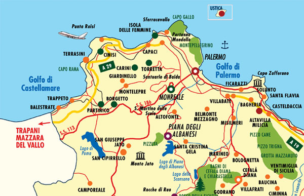 A short stretch of motorway connects Mondello to the city airport of Punta Raisi.